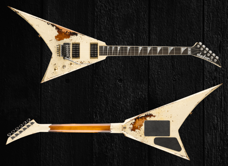 Nitro-Relic Tour Finish; Genuine Mahogany Body Wood; Matching Painted Caramelized Quartersawn Maple Neck-Thru Design; Ebony Fingerboard; Jackson® Headstock; Ivoroid Binding; Mother-Of-Pearl Sharkfin Fingerboard Inlays; 22 - Jumbo Frets; Black Side Dots; Floyd Rose® Locking Nut; Chrome 1984 Floyd Rose® Top-Mount Bridge; Double Humbucker Pickup Rout; Seymour Duncan® JB Model™ Black Bobbins Bridge Pickup; Seymour Duncan® 59 Model™ Black Bobbins Neck Pickup; Chrome Gotoh® Tuning Keys; Brass Knurled Metal Dome Knob(s); 3-Way Toggle Switch; Brass 17mm Strap Buttons; .009" to .042" Strings; 90's Style Mother-Of-Pearl Logo; Molded Hardshell Case; Certificate of Authenticity.