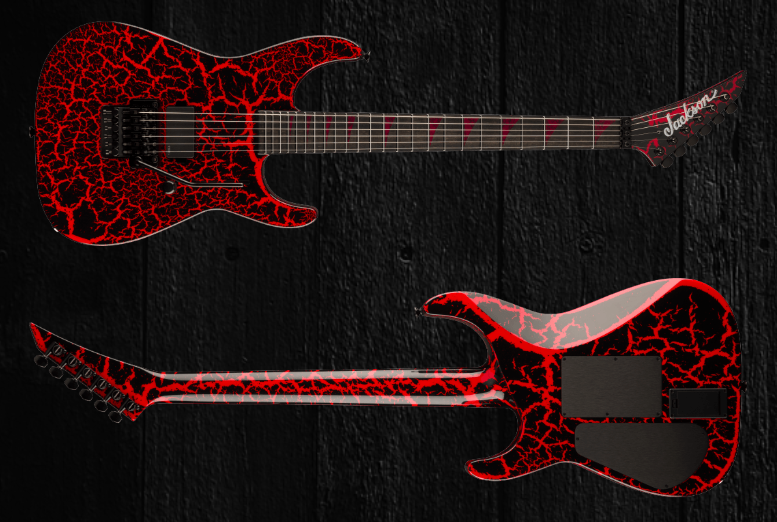 Custom Red Crackle Artwork; High-Gloss Polyester Finish; Premium Alder Body Wood; Matching Painted Quartersawn Maple Neck-Thru Design; Ebony Fingerboard; Reversed Jackson® Headstock; Black Binding; Red Stone Sharkfin Fingerboard Inlays; 24 - Stainless-Steel Jumbo Frets; Red Side Dots; Floyd Rose® Locking Nut; Black Floyd Rose® Recessed Bridge; Single Humbucker Pickup Rout; EMG 81 Black Cover Bridge Pickup; Black Gotoh® Tuning Keys; Black Knurled Metal Dome Knob(s); Black 17mm Strap Buttons; .009" to .042" Strings; 90's Outline Silver; Molded Hardshell Case; Certificate of Authenticity.
