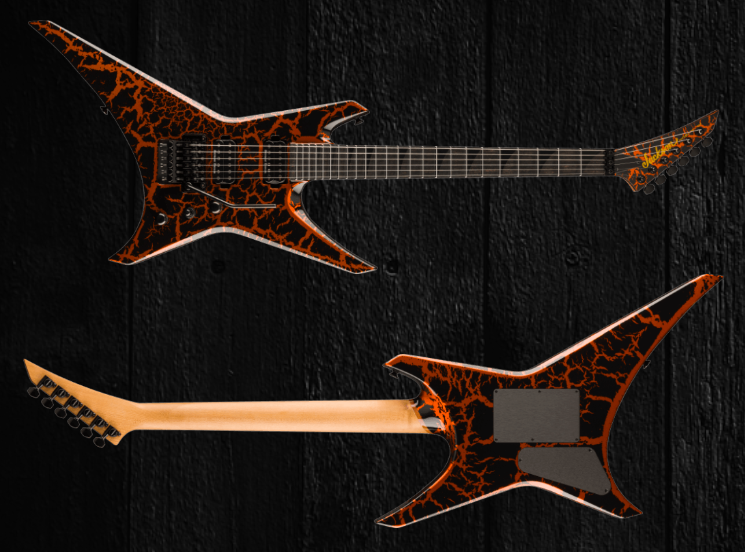 Custom Halloween Crackle Artwork; High-Gloss Polyester Finish; Premium Alder Body Wood; Oil Finished Caramelized Quartersawn Maple Neck-Thru Design; Ebony Fingerboard; Reversed Jackson® Headstock; Black Binding; Black Sharkfin Fingerboard Inlays; 24 - Stainless-Steel Jumbo Frets; Luminlay® Green Side Dots; Floyd Rose® Locking Nut; Black Floyd Rose® Recessed Bridge; Double Humbucker Pickup Rout; Seymour Duncan® Black Winter™ Black Bobbins Bridge Pickup; Seymour Duncan® Black Winter™ Black Bobbins Neck Pickup; Black Gotoh® Tuning Keys; Black Knurled Metal Dome Knob(s); 3-Way Toggle Switch; Black 17mm Strap Buttons; .009" to .042" Strings; 80's Style Yellow Logo; Molded Hardshell Case; Certificate of Authenticity.