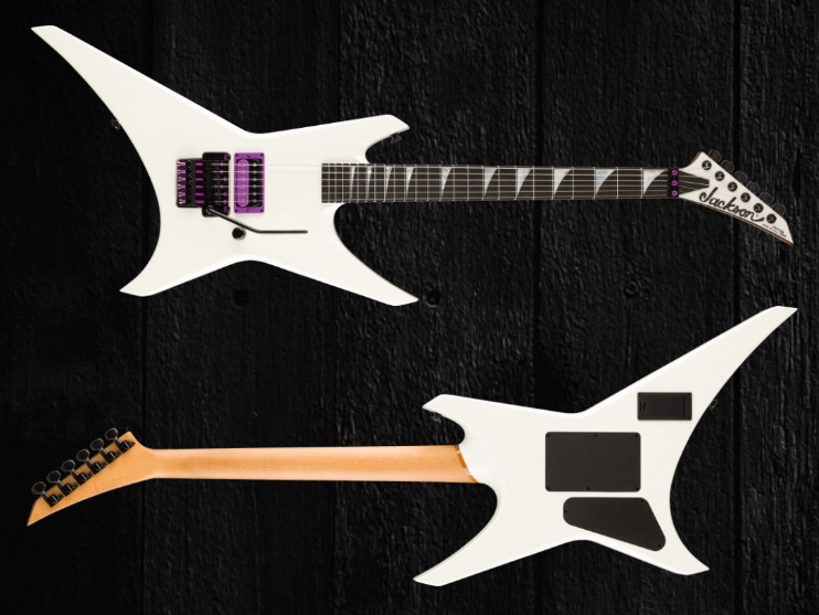 High-Gloss Urethane Finish; Premium Alder Body Wood; Oil Finished Caramelized Quartersawn Maple Neck-Thru Design; Ebony Fingerboard; Jackson® Headstock; Black Binding; Mother-Of-Pearl Sharkfin Fingerboard Inlays; 24 - Stainless-Steel Jumbo Frets; White Side Dots; Floyd Rose® Locking Nut; Black Floyd Rose® Recessed Bridge; Purple FU Tone Titanium Upgrade Package; Fishman Purple and Black Zebra PRF Bridge Pickup; Black Gotoh® Tuning Keys; Black Knurled Metal Dome Knob(s); ; Black 17mm Strap Buttons; .009" to .042" Strings; 90's Style Black Logo; Molded Hardshell Case; Certificate of Authenticity.