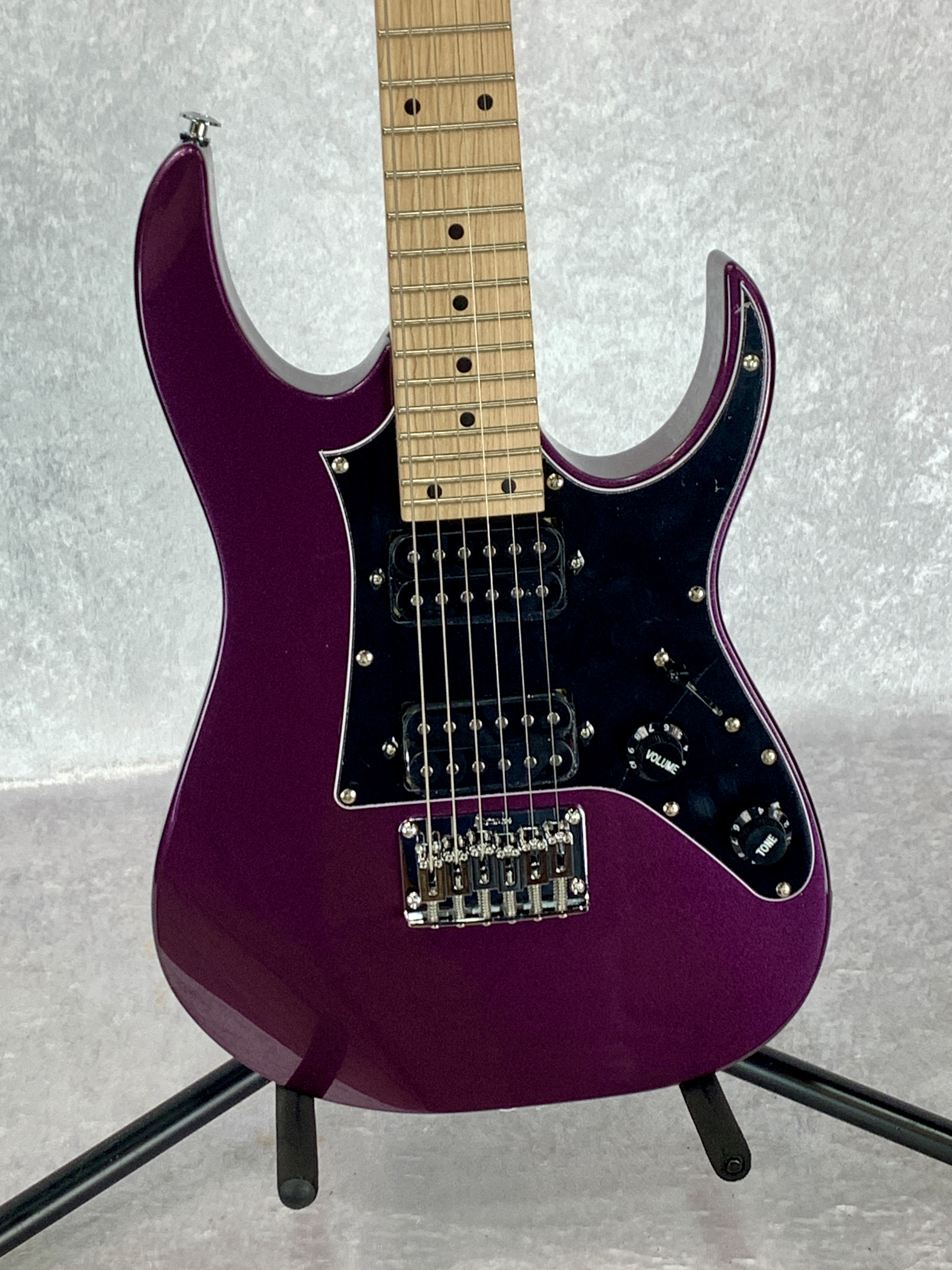 The Ibanez miKro GRGM21M is a perfect choice for any budding guitarist looking for an inexpensive 6-string built for smaller hands and shorter arms. With its exciting colors and unmistakable RG body style, this undersized axe doesn't just look cool — it also plays the part. The GRGM21M sports a pair of standard Ibanez humbuckers, which give you thick and punchy tone that's perfect for rock, metal, and other modern styles. A thin and totally playable short-scale maple neck plus medium-gauge frets ensure that beginners will enjoy playing the Ibanez miKro GRGM21M guitar!