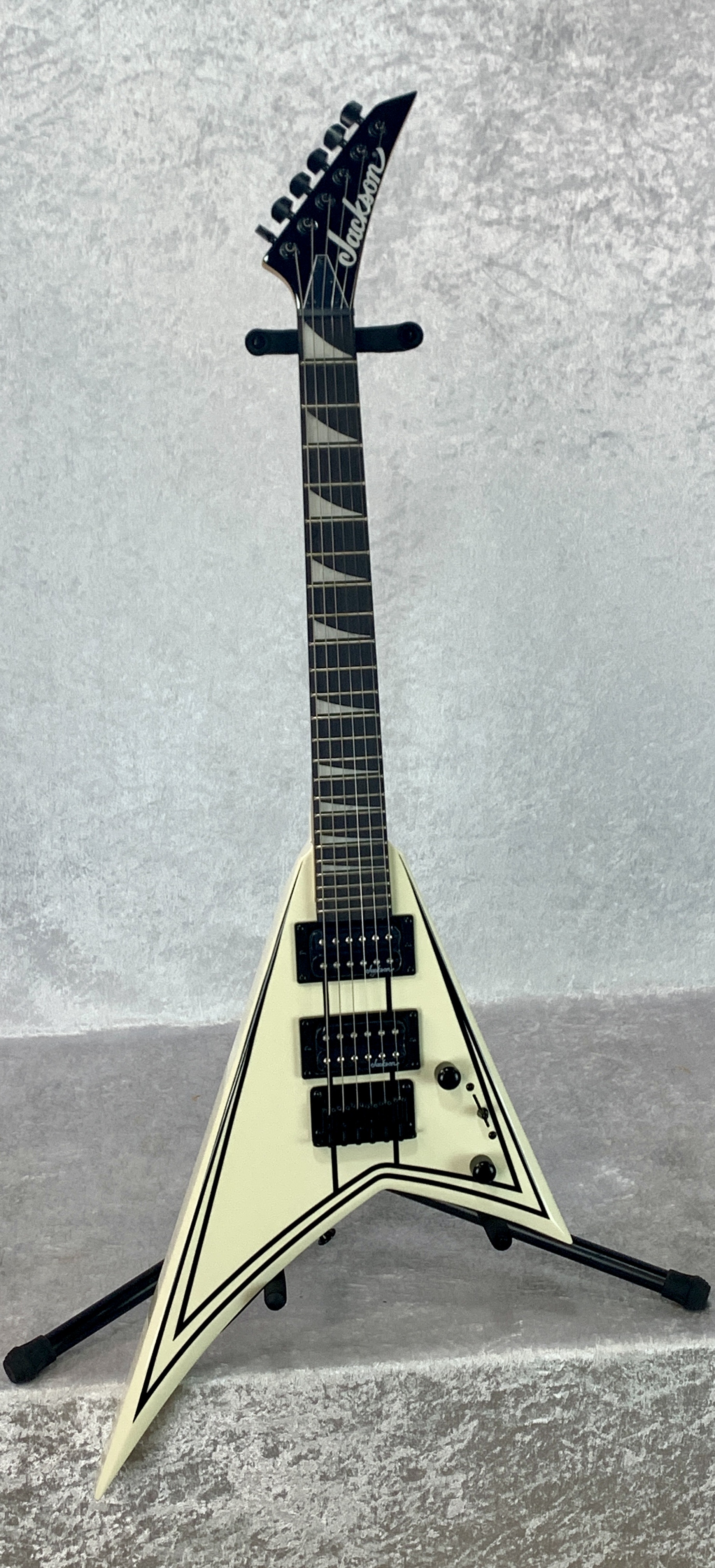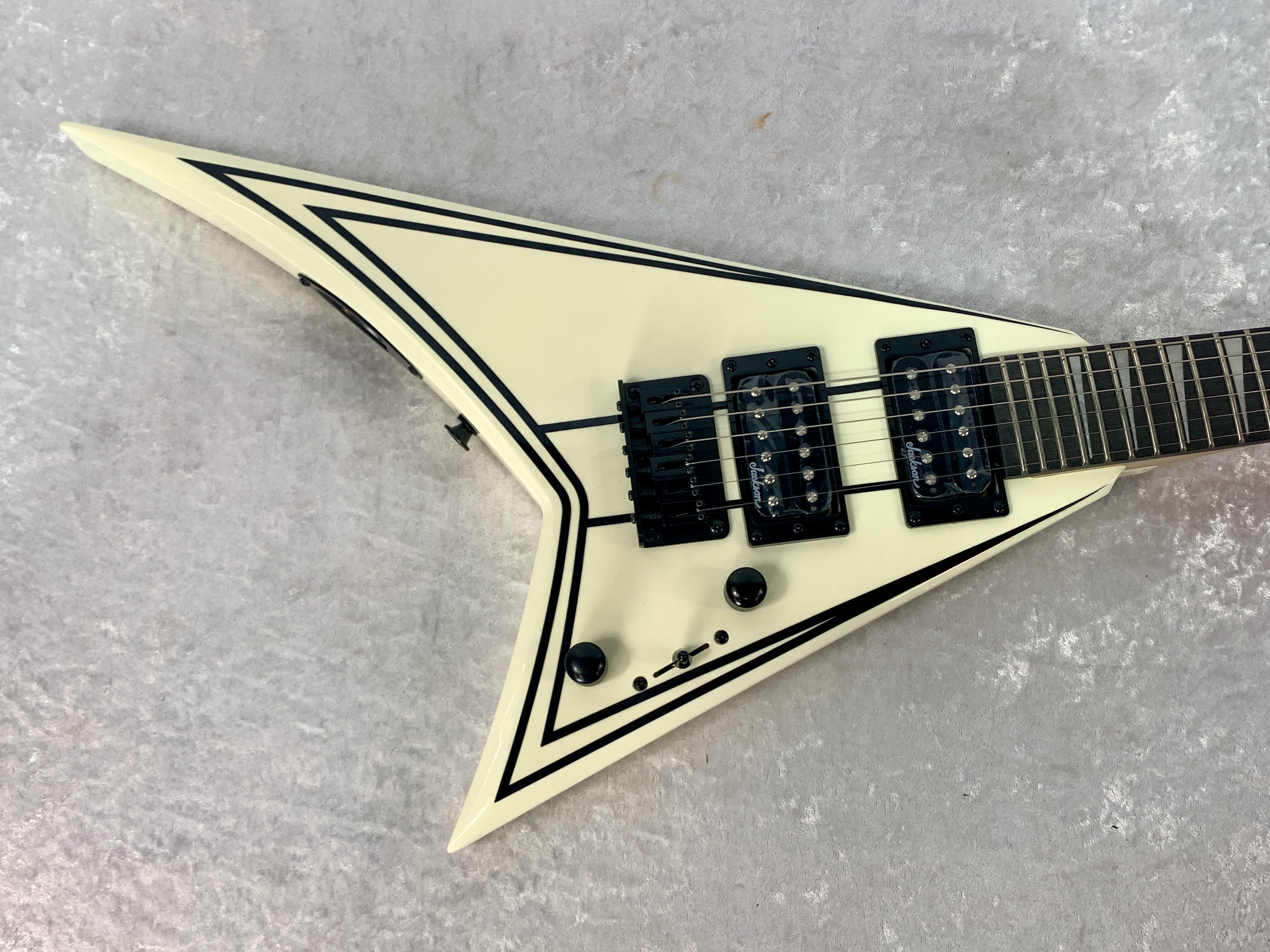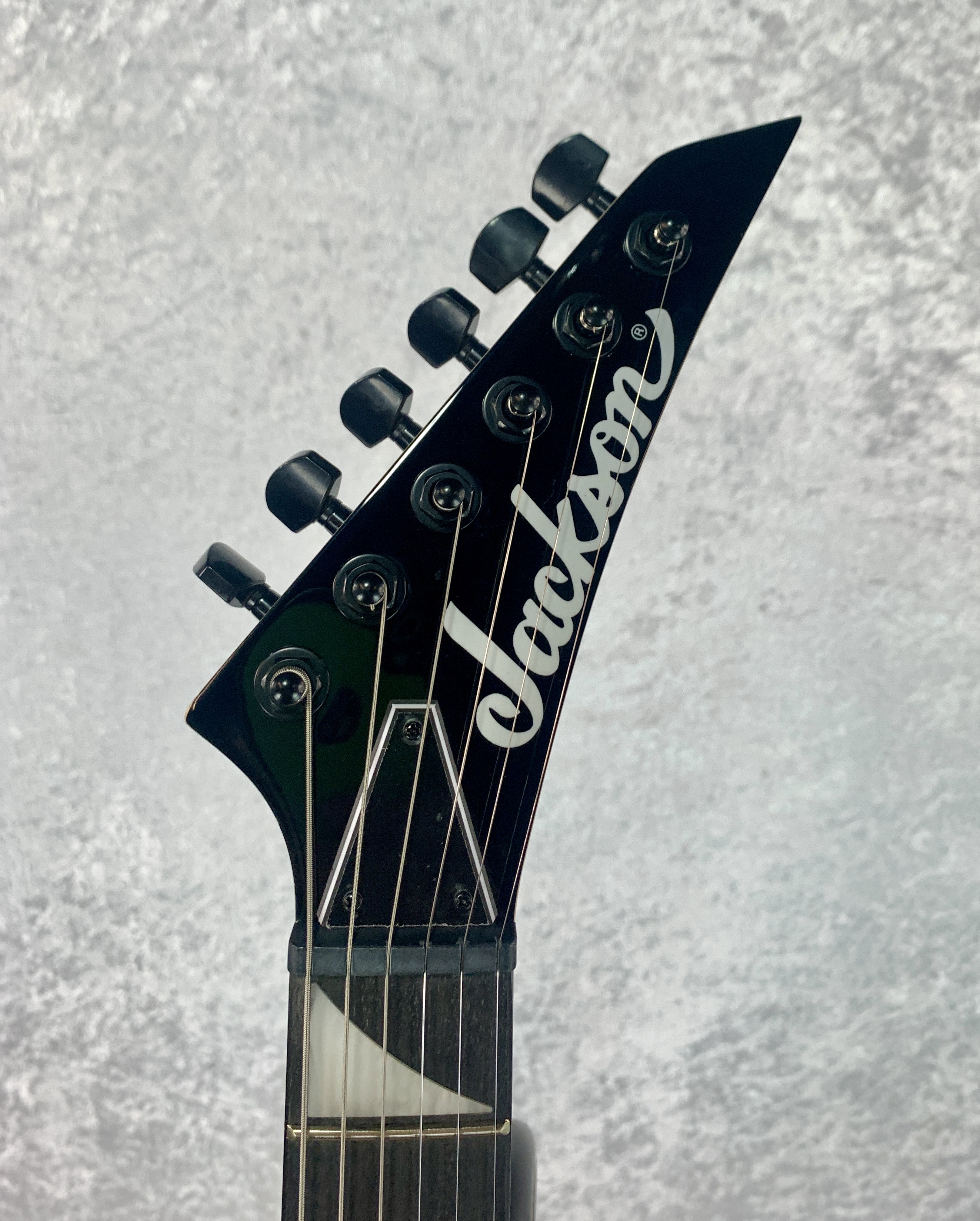 - Black hardware and Jackson pointed 6-in-line headstock