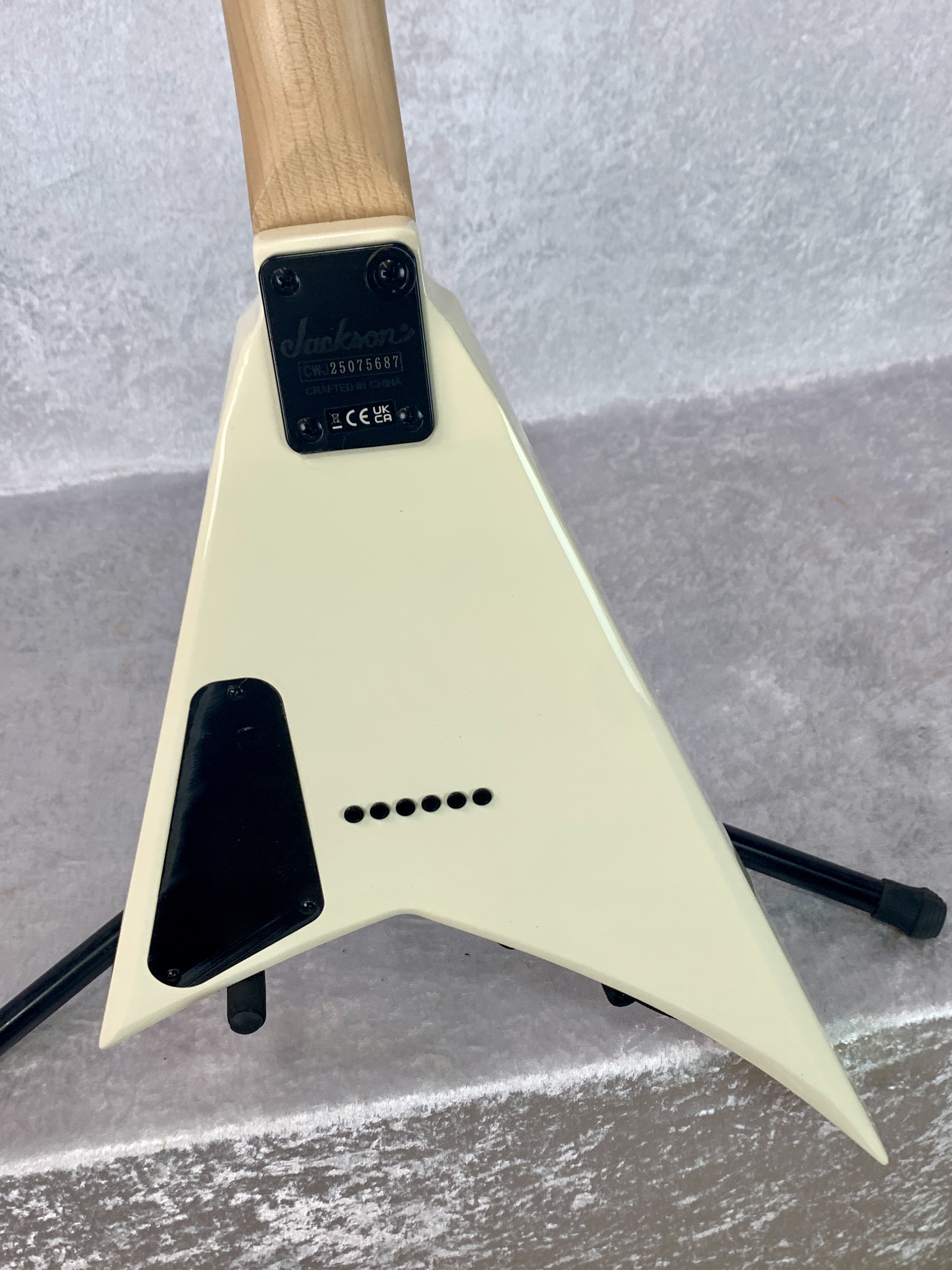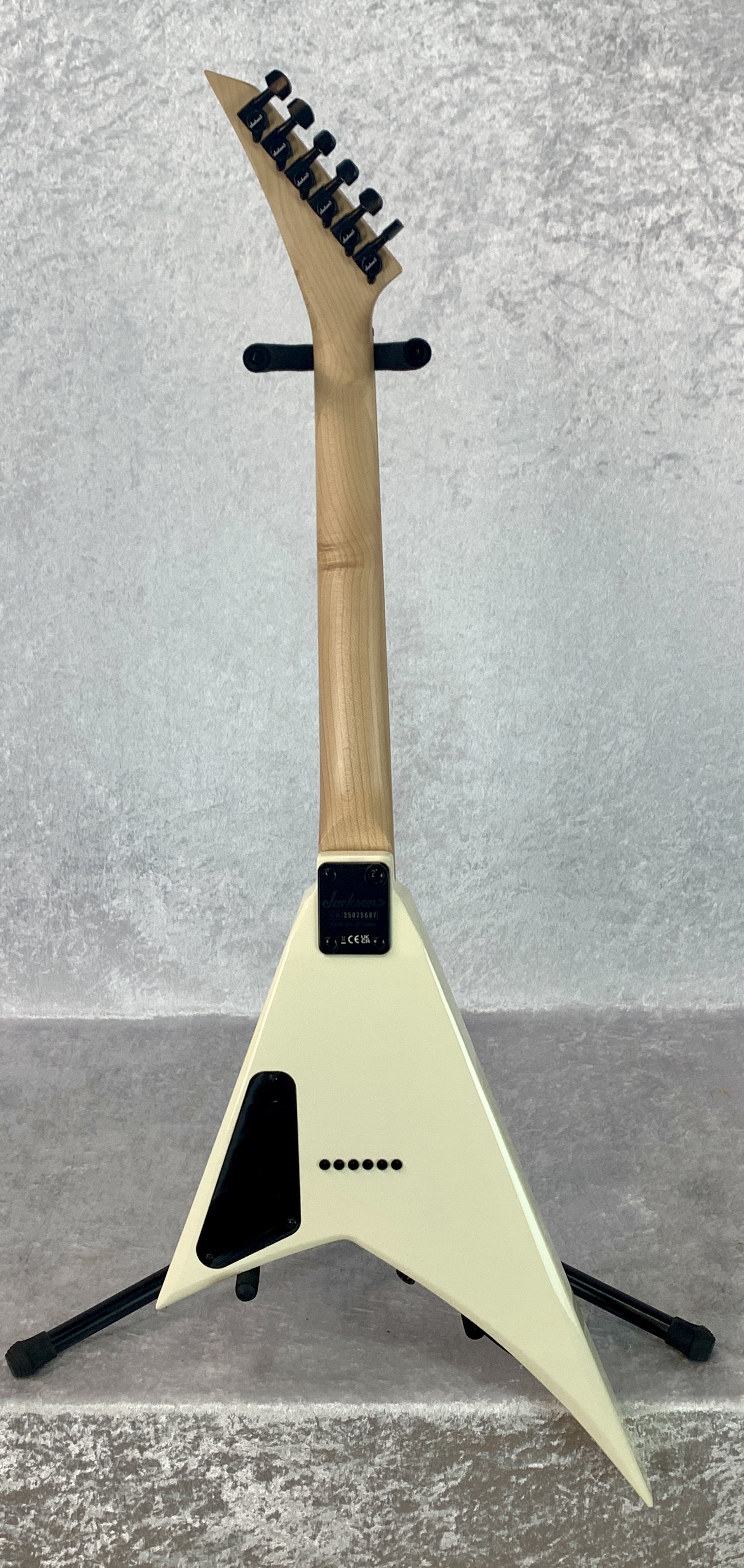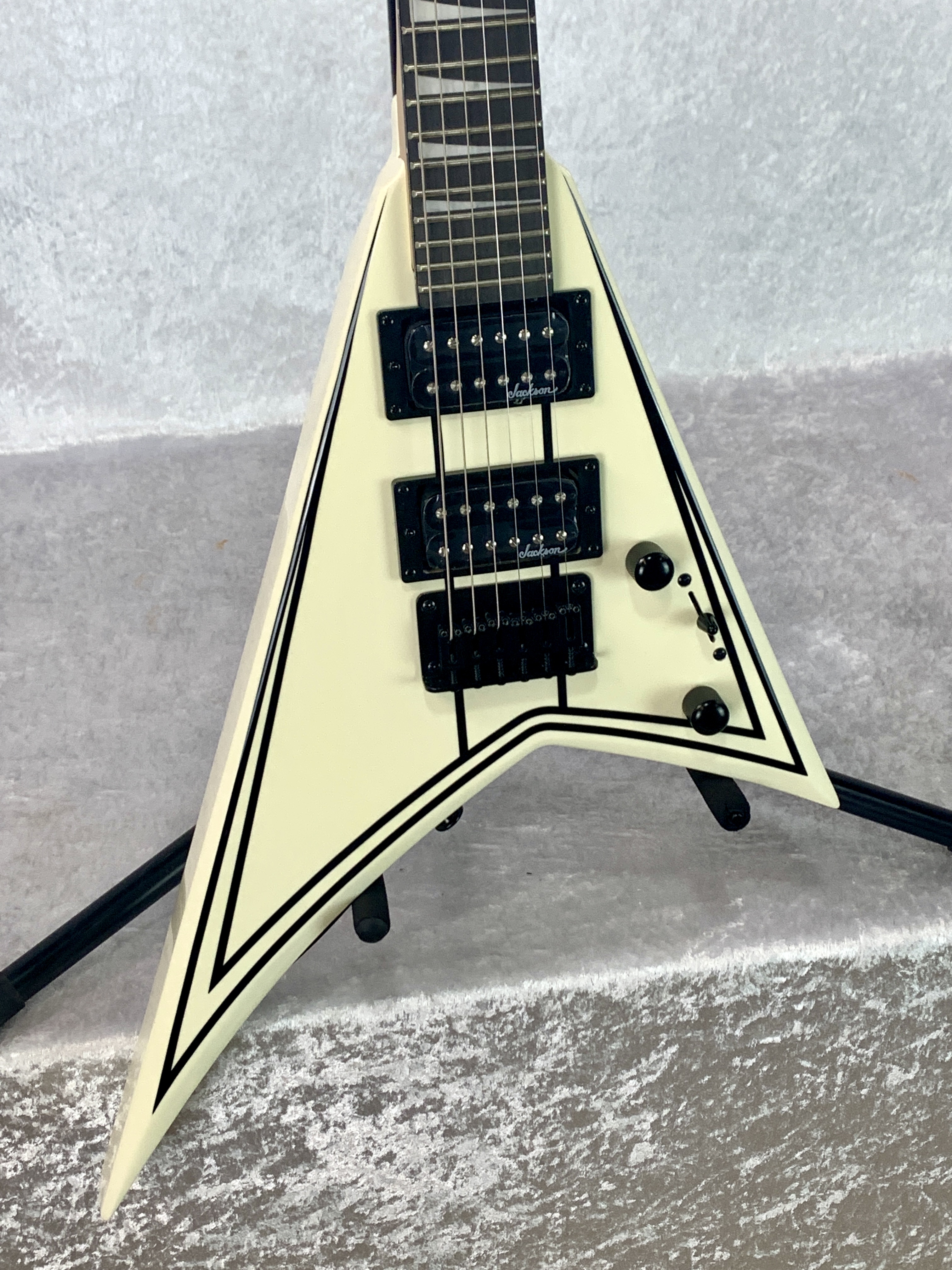 - Black hardware and Jackson pointed 6-in-line headstock