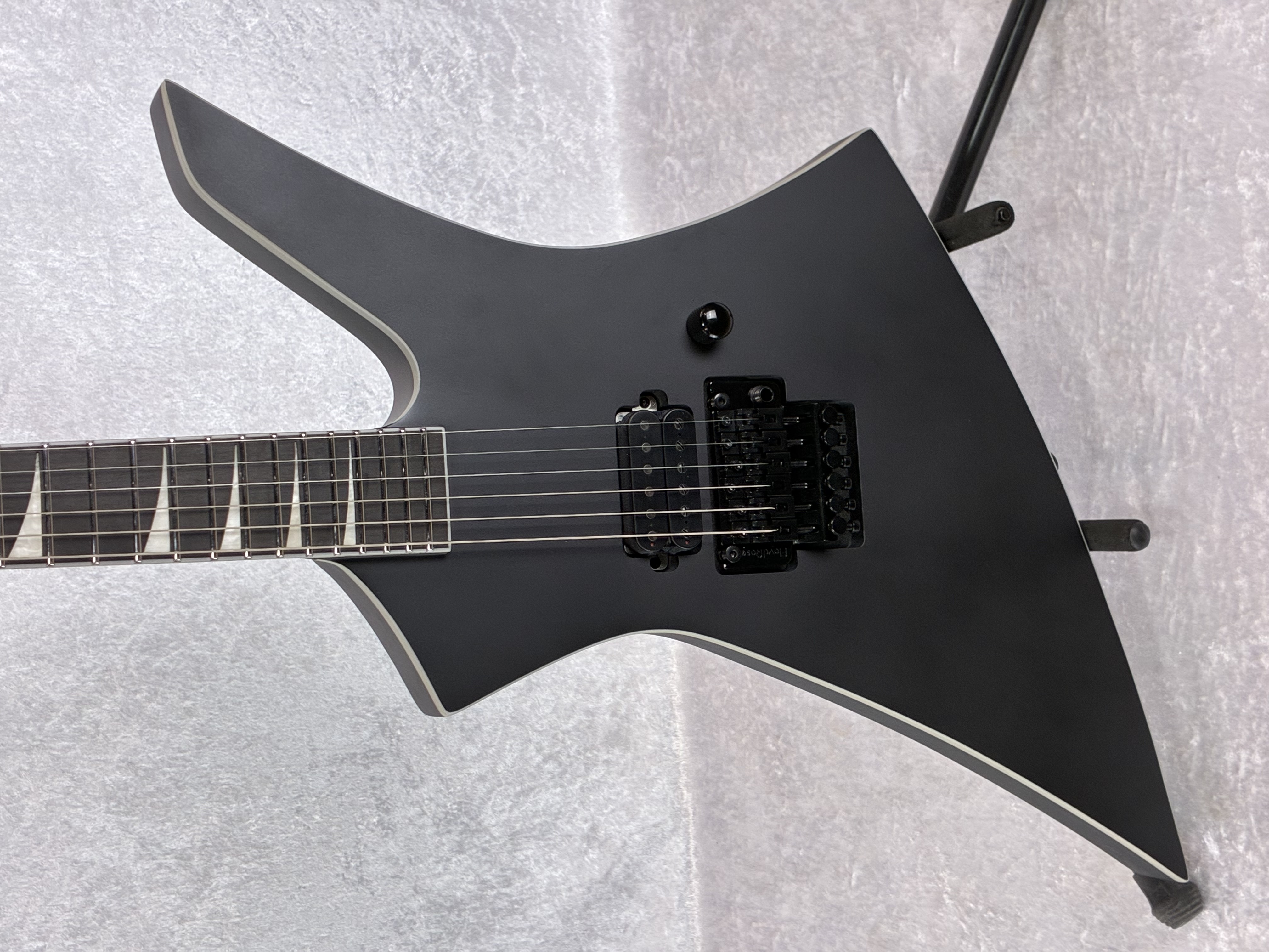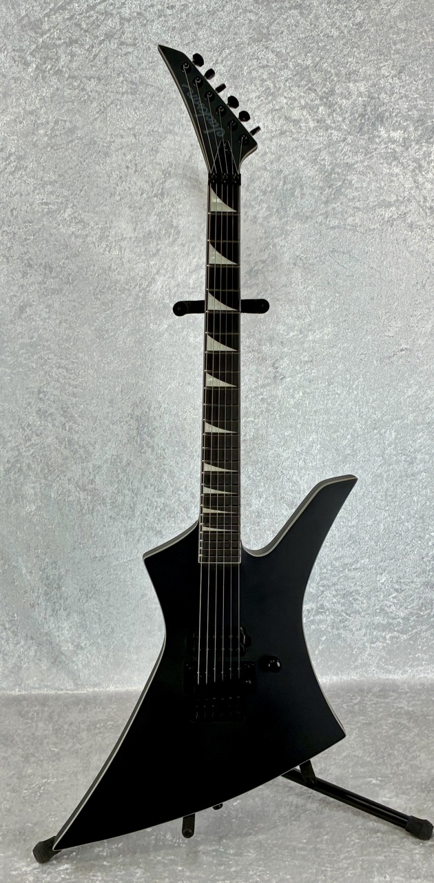 The KE1A wields a single-ply bound poplar body with a three-piece maple neck-thru construction engineered for lightning fast playing. The compound radius ebony fretboard with 24 jumbo stainless steel frets beckons blistering solos across its expanse. Sharkfin inlays guide your shredding while providing the iconic Jackson style metalheads crave.