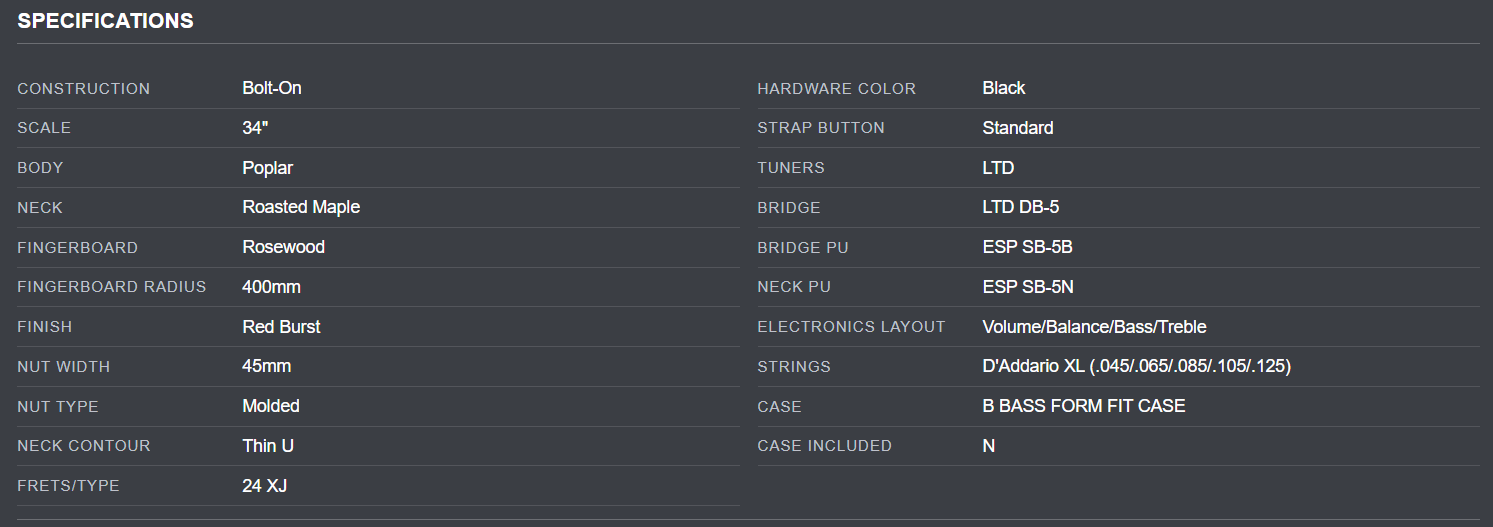LTD B-205DX DX SERIES BASS \ RED BURST