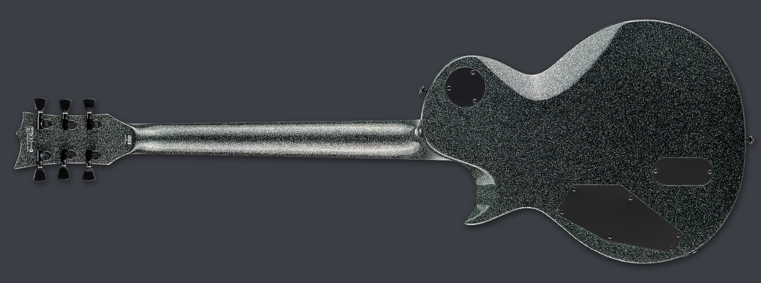 Designed for professional guitar players who require the versatile tones, smooth playability, and complete reliability for serious recording and touring needs, the EC-1000 Granite Sparkle is a tough yet elegant take on the classic single-cutaway ESP Eclipse body style. Built with set-thru construction at traditional 24.75” scale, it offers unobstructed access to the highest frets. This EC-1000 includes a mahogany body, a three-piece mahogany neck, a matching-finish headstock, and a Macassar ebony fingerboard with 24 extra-jumbo stainless steel frets. Black and white multi-binding defines the body and headstock. Components on the EC-1000 Granite Sparkle include a TonePros locking TOM-style bridge and tailpiece, LTD locking tuners, and a set of direct-mounted Fishman Fluence Modern 3-Voice Humbucker pickups — ceramic in the bridge, and alnico in the neck — with Black Nickel covers. Push-pull controls allow for selection of these innovative pickups’ multiple voices