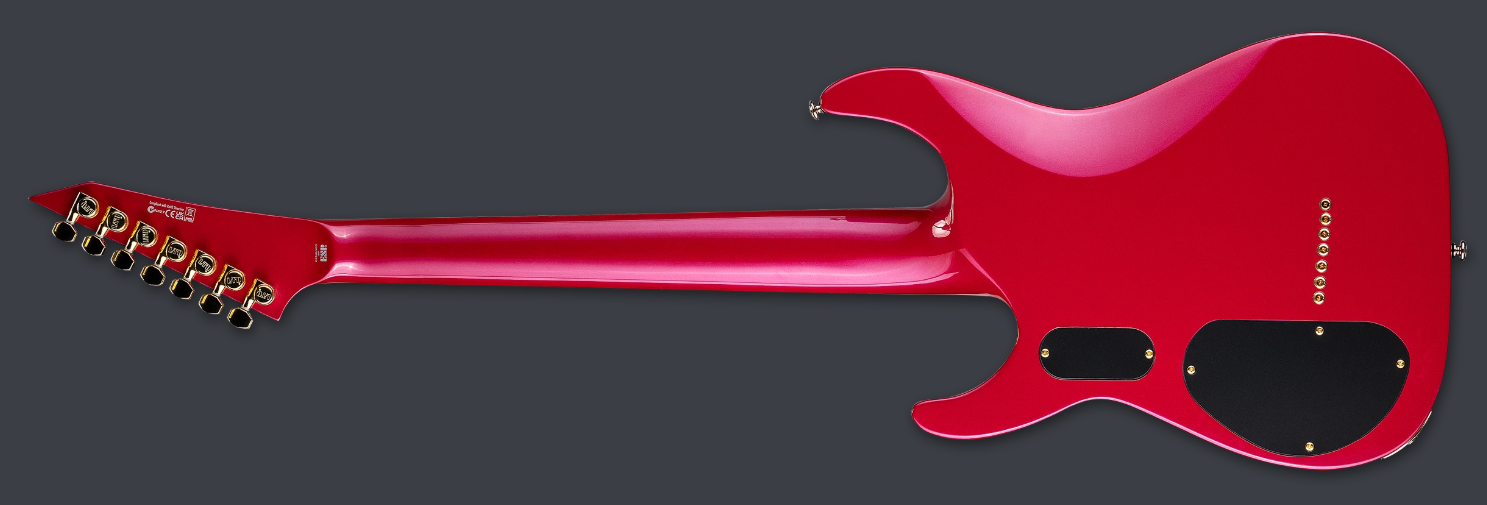 Available in a new Magenta finish for 2026, the SC-607 Baritone is an LTD Signature Series guitar for Stephen Carpenter, the influential co-founder of California-based alt-metal gurus Deftones. Built with neck-thru-body construction at 27” scale, the SC-607 Baritone is a seven-string guitar designed to allow you to explore the deep textures of downtuned heavy music. Its thin U-shaped three-piece maple neck — affixed to mahogany body wings — features a Macassar ebony fingerboard, 24 extra-jumbo frets, and a reverse headstock that adds even better string tension to the lowest registers. Components on the SC-607 Baritone include gold hardware, LTD locking tuners, a TonePros locking TOM-style bridge with string-thru-body, and a set of Stephen’s own Fishman Fluence SRC Signature 3-Voice, with push-pull controls to activate its various voices. Includes deluxe ESP hardshell case.