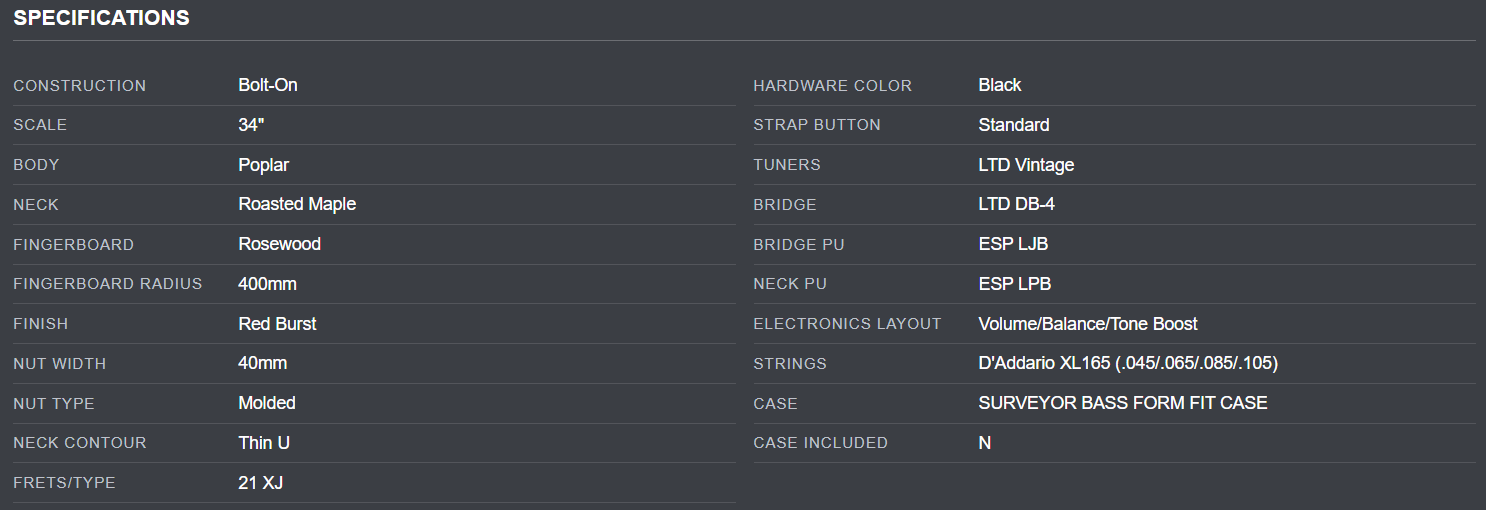 LTD SURVEYOR-204DX DX SERIES BASS \ RED BURST