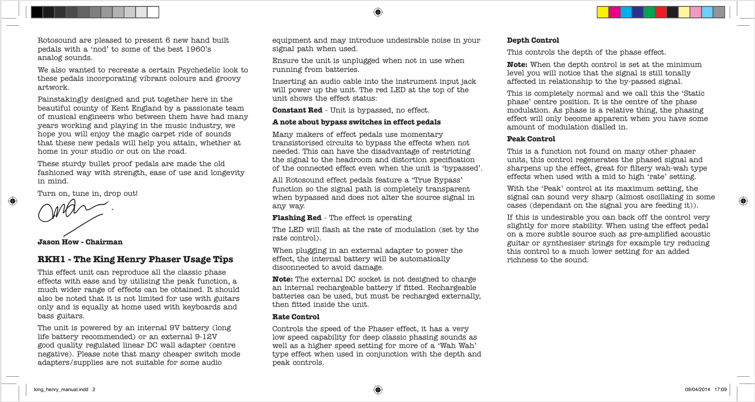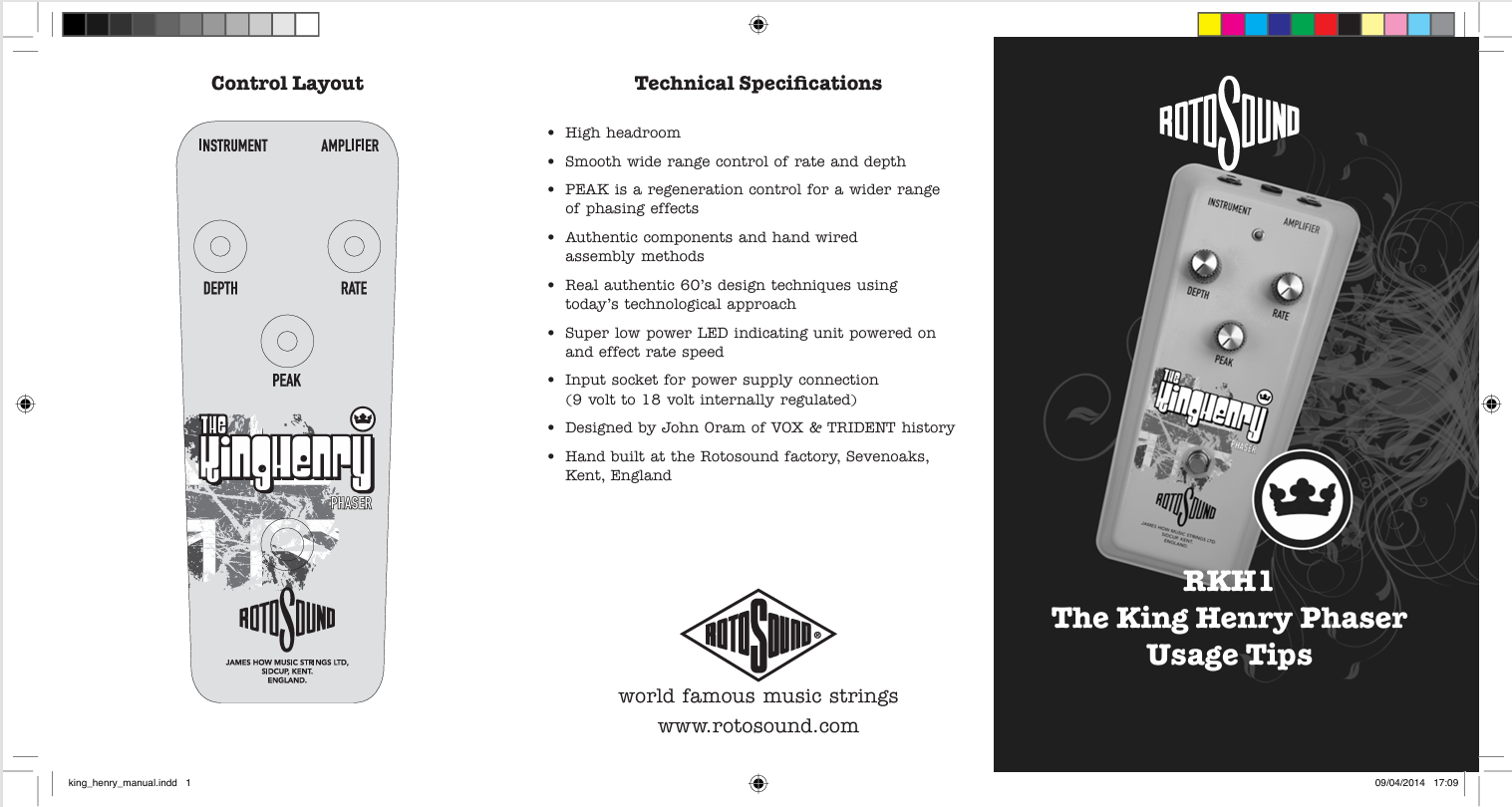 ROTOSOUND KING HENRY PHASER PEDAL MADE IN U.K. NEW OLD STOCK. BOX SHOWS SOME MINOR SHELF WEAR.